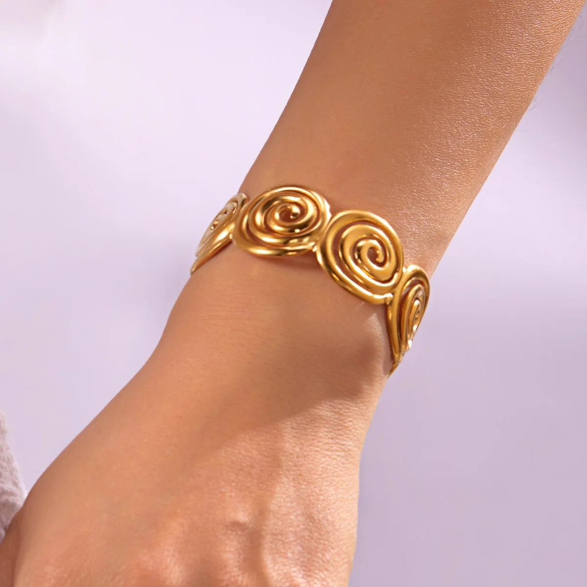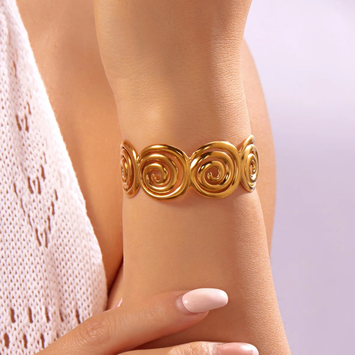 The Golden Wave Cuff is a sleek and modern accessory that combines bold design with understated elegance. Crafted from durable stainless steel, its twisted geometric lines create a striking visual effect, making it a standout piece for both men and women. The open cuff design ensures a comfortable fit while adding a contemporary edge to any outfit.