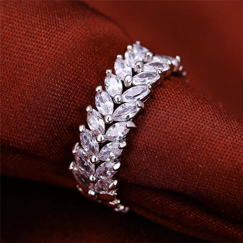 Elegant and eye-catching, this rose gold-plated ring features a graceful plant-inspired design adorned with shimmering zircon and crystal inlays. The prong-set stones offer a refined sparkle, while the trendy style and 4mm band width make it a standout choice for engagements, special occasions, or as a meaningful gift.