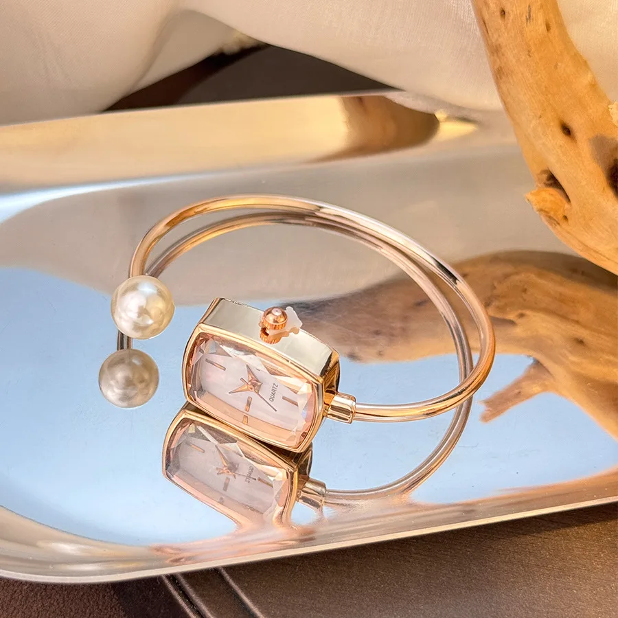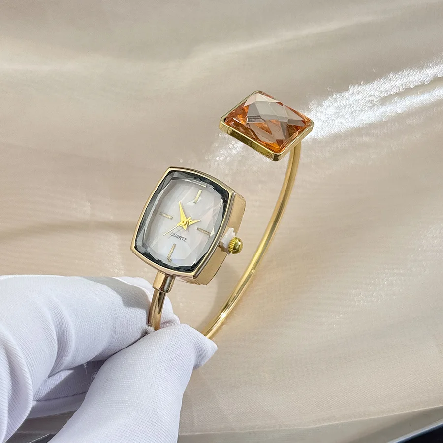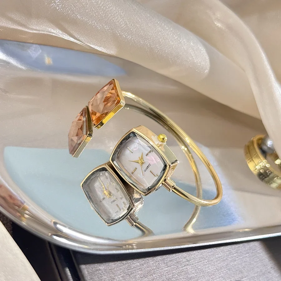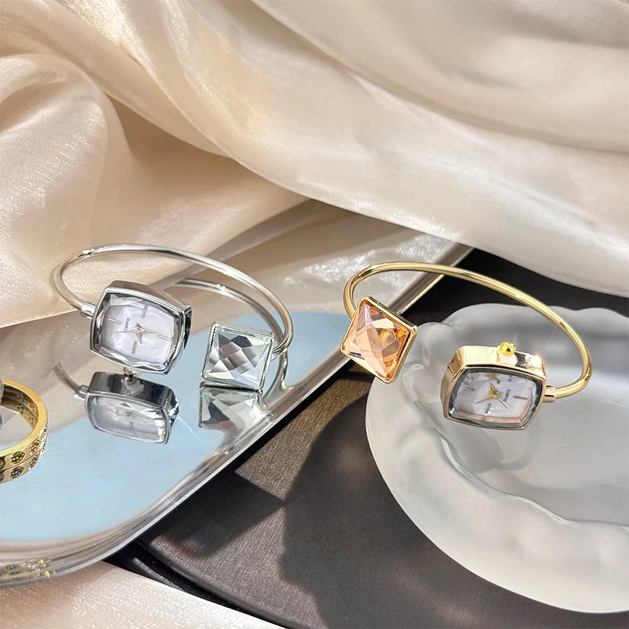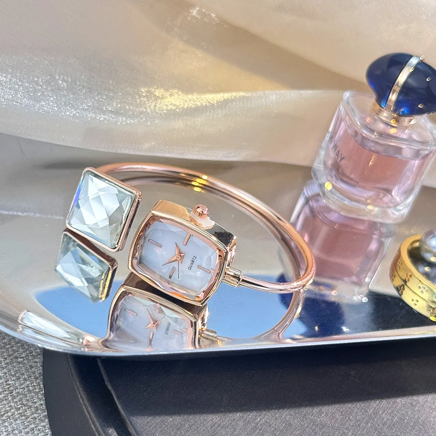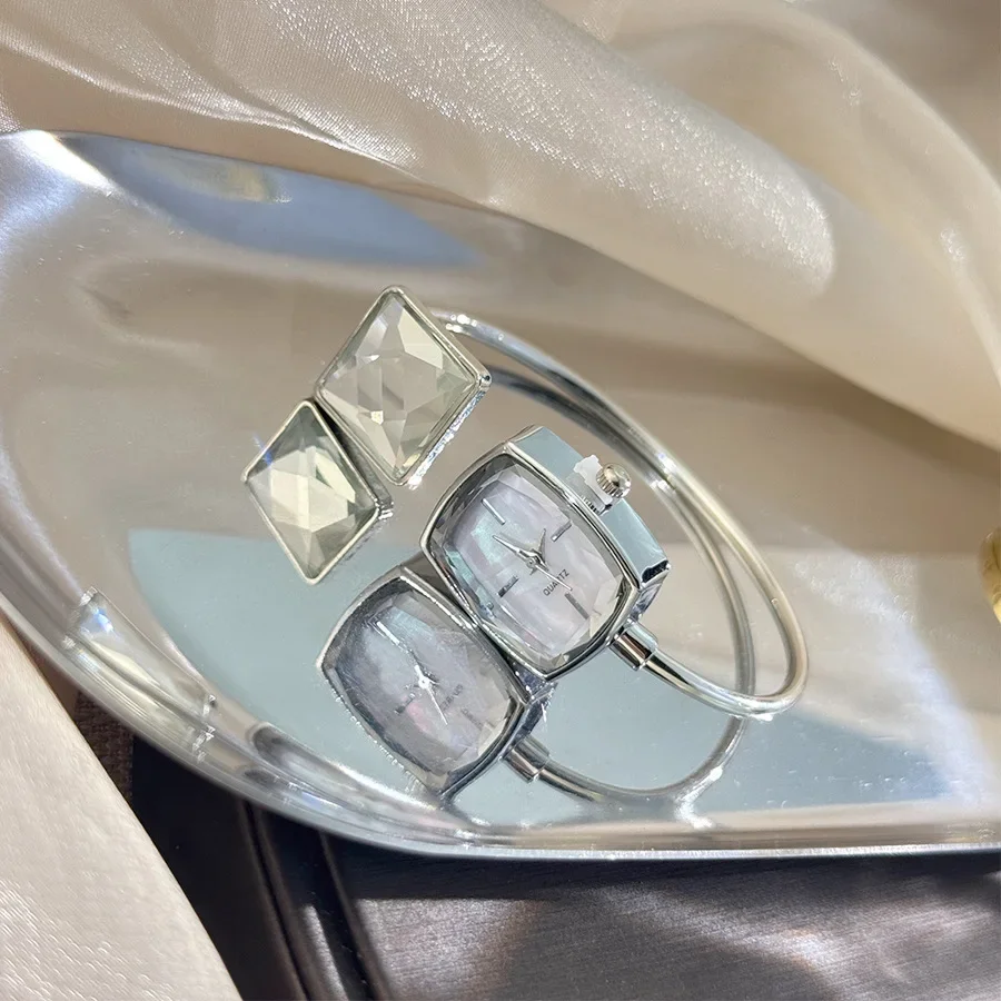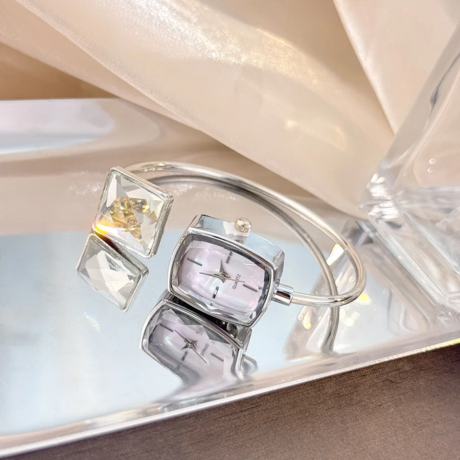 The SugarLuxe Diamond Bracelet Watch radiates refined glamour with a modern twist. Its petite round dial is framed by sparkling crystal accents, creating a luxurious yet minimalist aesthetic. The slim alloy bracelet design offers a comfortable, elegant fit, making it the perfect accessory for both everyday wear and special occasions.